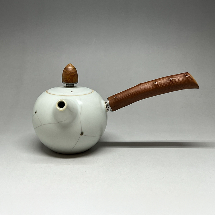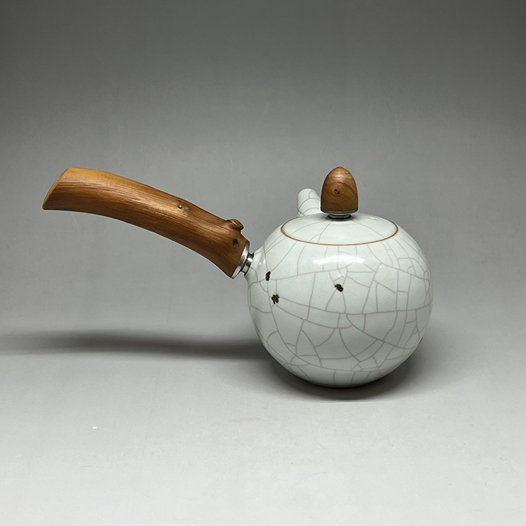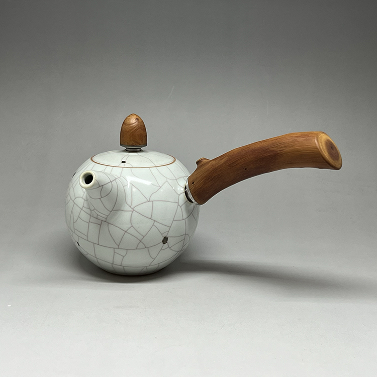 DAYDREAMER Artist Zhang Geming's Iron-Speckled  Ru Kiln Small Round Teapot with Side Handle
