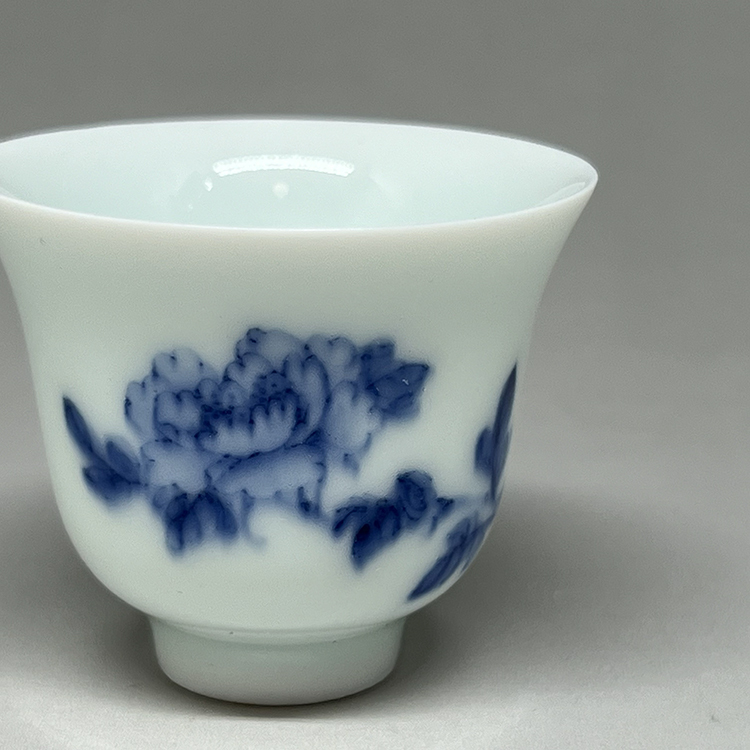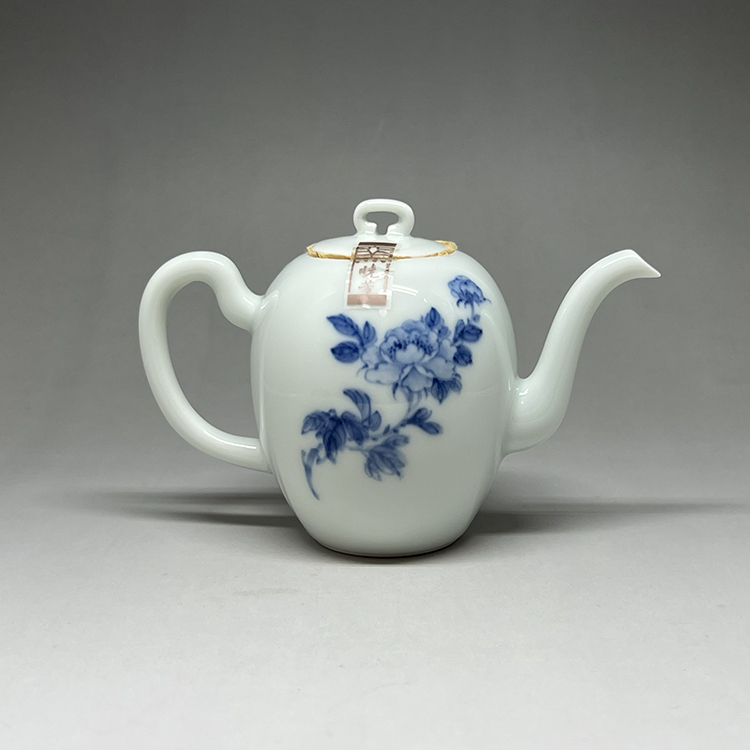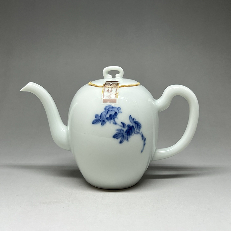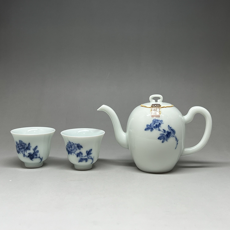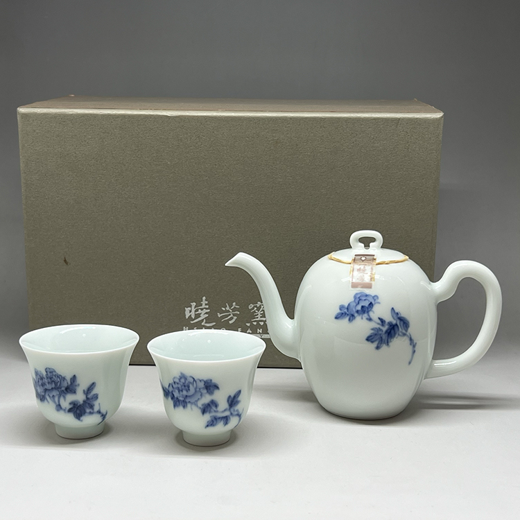 【INCENSE.TEA HOUSE】Xiaofang Kiln Master Cai Xiaofang's early hand-painted blue and white peony one pot and two cups gift box