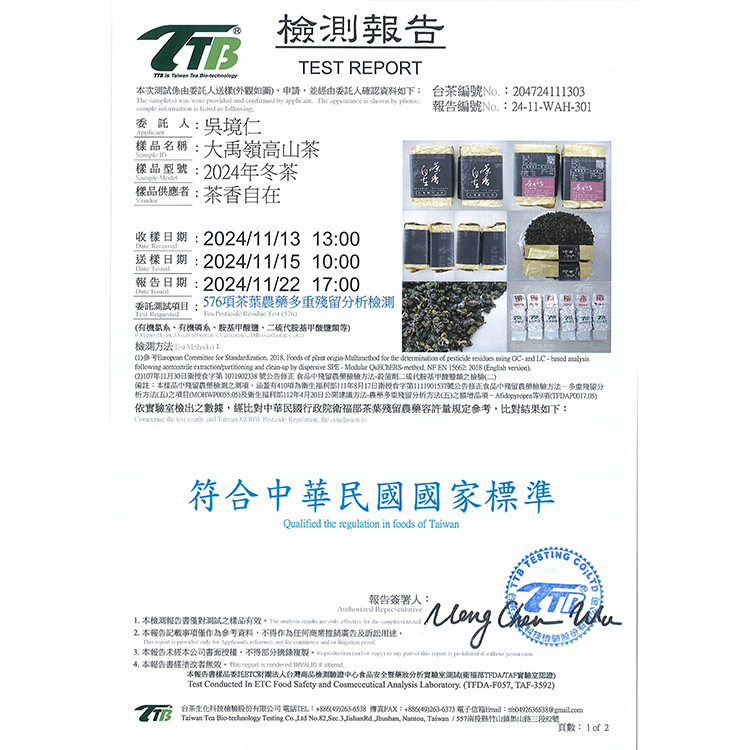 Test Requested Tea Pesticide Residue Test (576)